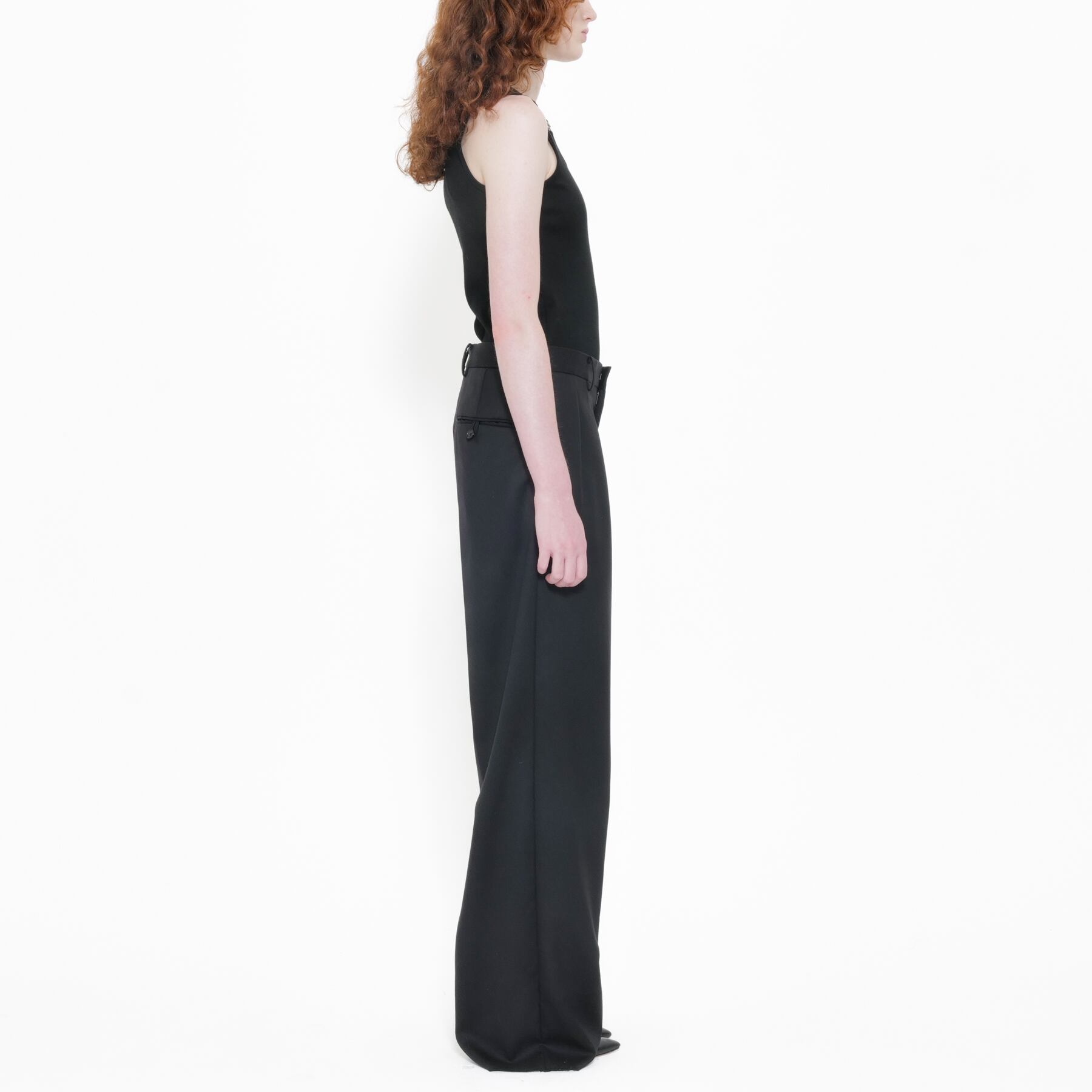 ・Suspender hardware at shoulders.